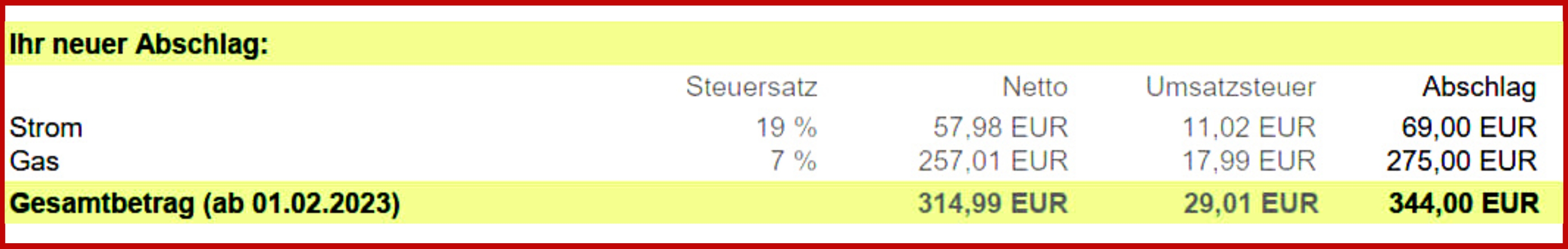 Dann sehen Sie, ob Sie Geld zurückbekommen, weil Sie Energie gespart oder von vornherein einen höheren monatlichen Abschlag gewählt haben oder, ob Sie eine Nachzahlung auf Ihrer Rechnung finden.